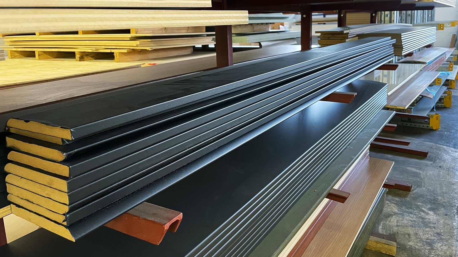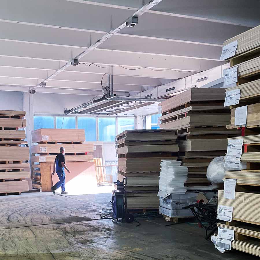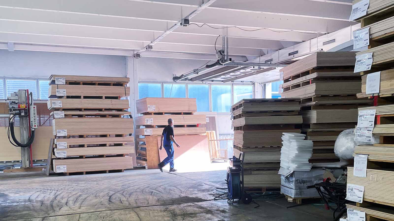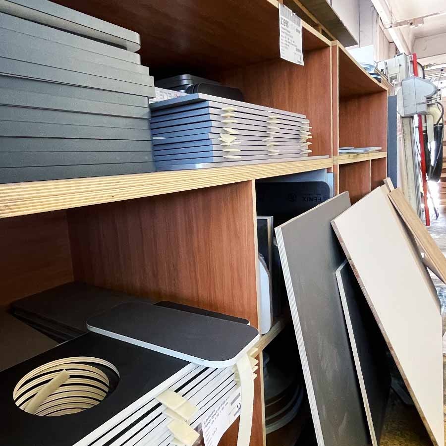 Restbeständen von Holzwerkstoffen, Konstruktionsholz / Sperrholz roh oder beschichtet (auch CPL & HPL) in verschiedenen Stärken / Platten verschiedenster Größen (z. B. Tische oder Arbeitsplatten) / Aluprofile